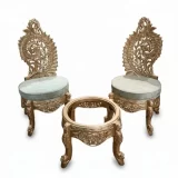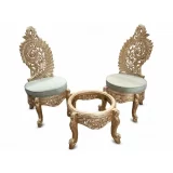 * Made up of Solid Seasoned Rosewood/Sheesham Wood. * Intricate Hand Carving (depends on design) * High Quality of Wooden Polish/Deco with High End Matt/Gloss Finish. * Wide Ranges of Scheme for Deco and Polish, Customize according to your theme. * 10-year Warranty Foam is used * High Quality Fabric used, along wide range of variety and schemes. * Chair Set consist of 2 Chairs and a Coffee table. * Glass/Marble Top placed on coffee Table. Contact us Now for Customization, from sizes to theme. Get everything of your Choice.